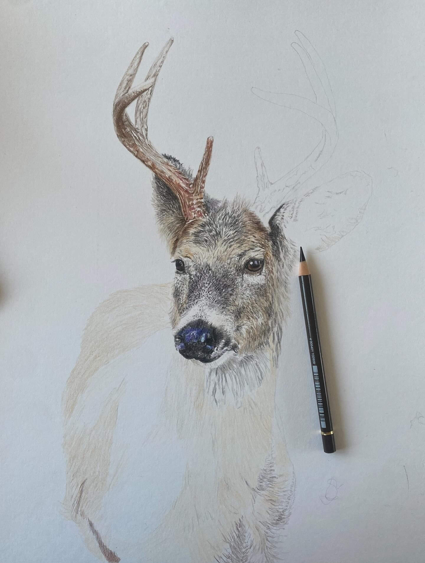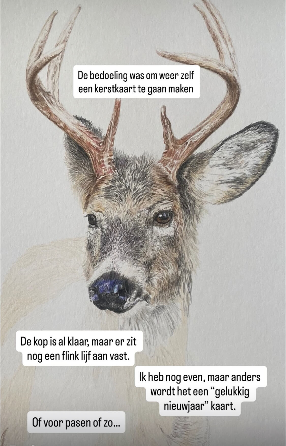 Tussen de bedrijven door was het toch leuk en ontspannend om aan dit hert te werken.